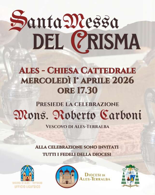 La Chiesa diocesana di Ales-Terralba, con profonda gioia e gratitudine al Signore, annuncia che lunedì 5 gennaio 2026, alle ore 17:00, presso la Chiesa Cattedrale di Ales, durante i Primi Vespri della Solennità dell’Epifania del Signore, il diacono Andrea Scanu, della parrocchia di San Nicolò Vescovo in Guspini, sarà ordinato sacerdote per l’imposizione delle mani e la preghiera consacratoria di S.E. Mons. Roberto Carboni, Arcivescovo.