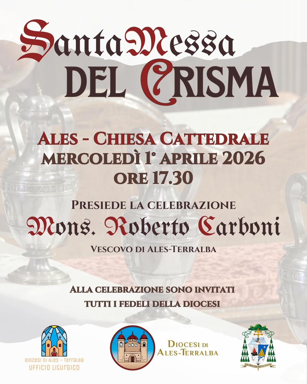 La comunità diocesana si prepara a vivere uno dei momenti più significativi dell’anno liturgico: la Messa crismale, che sarà presieduta dal Vescovo e concelebrata da tutti i presbiteri della diocesi.